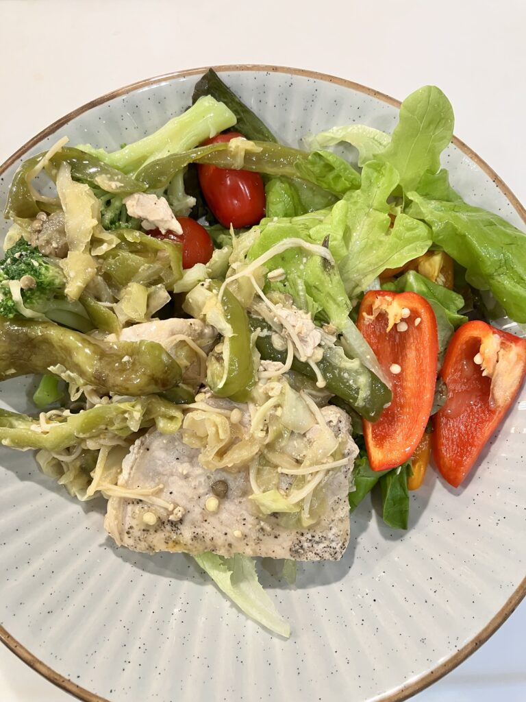 • 野菜をたっぷり添えてボリューム&食物繊維も摂れる