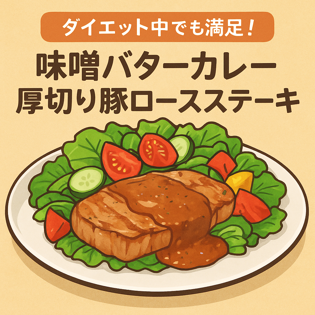 🍖ダイエット中でも満足!味噌バターカレー厚切り豚ロースステーキ【子どもも喜ぶボリュームごはん】